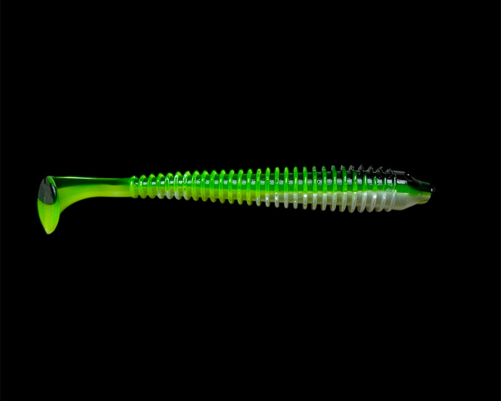Der Schwerpunkt , wurde ganz klar auf seine unglaubliche Weichheit und auf seinen schmal verlaufenden Körper gelegt , diese beiden Komponenten geben den Fisch ein wirklich problemloses einsaugen des Gummifisch beim Biss .