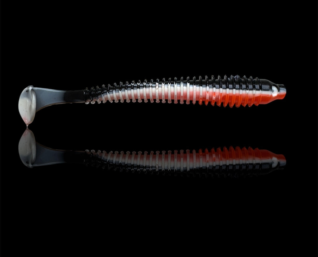 Der Schwerpunkt , wurde ganz klar auf seine unglaubliche Weichheit und auf seinen schmal verlaufenden Körper gelegt , diese beiden Komponenten geben den Fisch ein wirklich problemloses einsaugen des Gummifisch beim Biss .