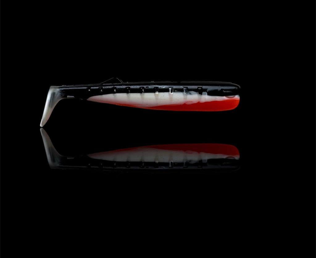 Der Schwerpunkt , wurde ganz klar auf seine unglaubliche Weichheit und auf seinen schmal verlaufenden Körper gelegt , diese beiden Komponenten geben den Fisch ein wirklich problemloses einsaugen des Gummifisch beim Biss .